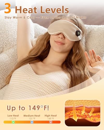 Heated Eye Mask for Dry Eyes – Upgraded Cordless Warm Eye Compress, 100% Mulberry Silk Sleep Mask with Graphene Heating, 3 Heat Levels and Auto Shut-Off, Rechargeable and Washable for Mother’s Day