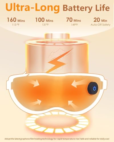Specification: Heated Eye Mask for Dry Eyes – Upgraded Cordless Warm Eye Compress, 100% Mulberry Silk Sleep Mask with Graphene Heating, 3 Heat Levels and Auto Shut-Off, Rechargeable and Washable for Mother’s Day